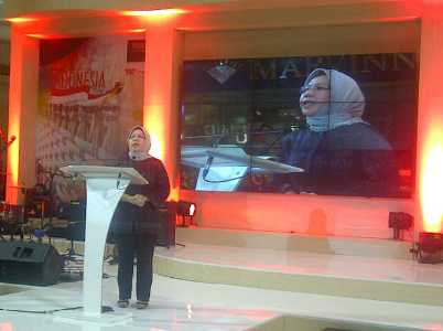 Meski panen kritik karena sering mengimpor bahan pangan dari luar negeri, Kementerian Perdagangan tetap mengkampanyekan peningkatan penggunaan produk dalam negeri. Kementerian yang dipimpin Gita Wirjawan itu menggelar acara kampanye "Untukmu Indonesiaku" di tiga mal besar di DKI Jakarta, masing-masing selama tiga hari, mulai hari ini (Sabtu, 5/10). Tampak di foto adalah Direktur Jenderal Perdagangan Dalam Negeri Srie Agustina saat membuka acara di Mal Artha Gading, Kelapa Gading, Jakarta Utara. FAYADDH ABUBAKAR/RMOL