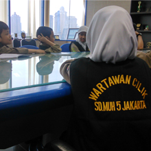 "Bagaimana caranya menjadi jurnalis yang baik?" tanya salah seorang wartawan cilik, Natashya.