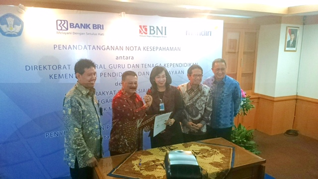 MOU ditandatangani Direktur Jaringan & Layanan BNI, Adi Sulistyowati dengan Direktur Jenderal Guru dan Tenaga Kependidikan Kemdikbud, Sumarna Surapranata, di Jakarta, Kamis (30/9).