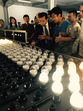 Setnov menjelaskan, dari pembicaraannya dengan pemilik pabrik, tahap awal produksi hari ini akan membuat 4 juta lampu LED berbagai jenis dan tipe baik untuk