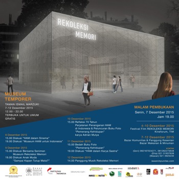 Dalam penyelenggaraan Festival Film Rekoleksi Memori, Partisipasi Indonesia berkolaborasi dengan Komnas HAM dan Dewan Kesenian Jakarta. Kendati festival film telah dimulai hari ini (Jumat, 4/12), namun Museum Temporer baru akan dibuka pada Senin (7/12) mendatang, pukul 19.00 WIB. Seluruh rangkaian acara Rekoleksi Memori dibuka untuk umum dan gratis.