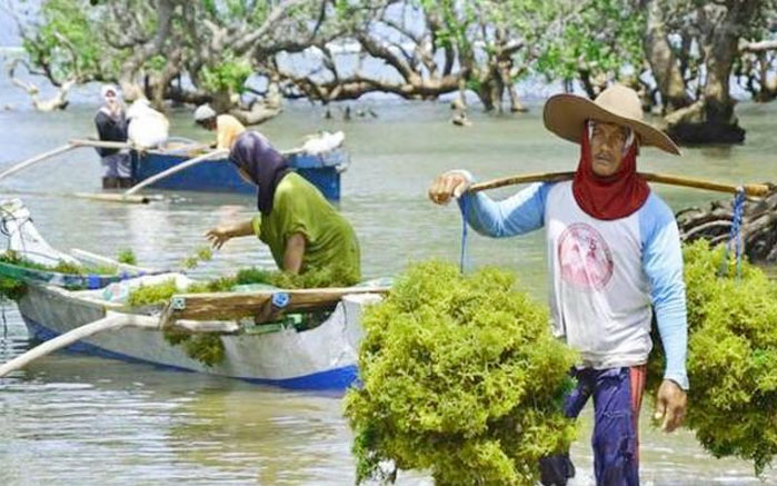 Selain itu, Indonesia meruÂpakan produsen utama rumput laut di dunia yang cukup banÂyak menyerap tenaga kerja di daerah pesisir dan pulau-pulau terluar. Selama ini rumput laut menjadi bahan baku carÂrageenan dan agar-agar.