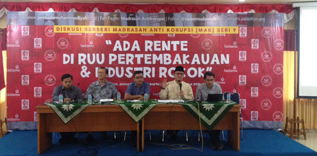 Madrasah Anti Korupsi Pemuda Muhammadiyah bersama Indonesian Institute for Social Development, LazisMu, Indonesia Coruption Watch, YLBHI menggelar diskusi "Ada Rente di RUU Pertembakauan dan Industri Rokok" di Aula Gedung Pusat Dakwah Muhammadiyah, Jalan Menteng Raya 62, Jakarta Pusat, kemarin.