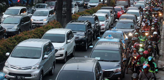 Antrean kendaraan mengular di ruas Jalan HR Rasuna Said, Jakarta, Kamis (1/9). Sejak diberlakukan aturan kebijakan lalu lintas pelat nomer ganjil/genap di jalan protokol di Ibukota yang sebelumnya kawasan 3 in 1, sejumlah kendaraan memilih jalan alternatif. Meskipun harus memutar dan terjebak kemacetan. Tedy Kroen/Rakyat Merdeka