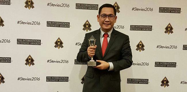 VP Corporate Communication Telkom, Arif Prabowo, saat menerima penghargaaan Stevie Award 2016 di Roma, Itala, Jumat (21/10). Telkom berhasil menyabet 19 penghargaan (7 Gold Winner, 6 Silver Winner, dan 6 Bronze Winner) Stevie Award 2016 sekaligus mempertahankan penghargaan Grand Stevie Award untuk ketiga kalinya dalam tiga tahun terakhir. Feril Nawali/RMOL