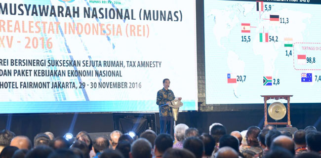 Jokowi dalam sambutannya menegaskan kembali komitmen pemerintah dalam deregulasi perizinan dan penyederhanaan birokrasi di sektor properti. Beliau mengungkapkan bahwa sudah banyak sekali langkah perizinan yang dipangkas meski diakui masih banyak hal yang harus dibenahi. Langkah-langkah tersebut merupakan bagian dari Paket Kebijakan Ekonomi ke-13.