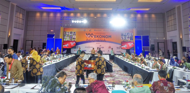 Sarasehan 100 Ekonom Indonesia di Hotel Fairmont dibuka langsung oleh Presiden Joko Widodo (Selasa, 6/12). Acara yang digagas oleh INDEF bekerjasama dengan Bank Indonesia ini menjadi ajang pertemuan para begawan-begawan ekonomi dengan menteri bidang ekonomi Kabinet Kerja. Foto Mantan Menko Perekonomian dan Menko Maritim, Rizal Ramli, ikut terpampang di panggung acara ini. RMOL