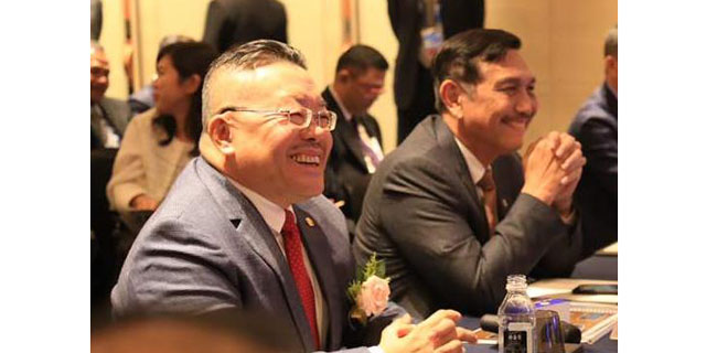 Sebagai perwakilan pemerintah Indonesia, Menko Kemaritiman Luhut Binsar Panjaitan dan Menteri Perindustrian Airlangga Hartarto turut mempromosikan rencana tersebut, Sabtu (13/5).