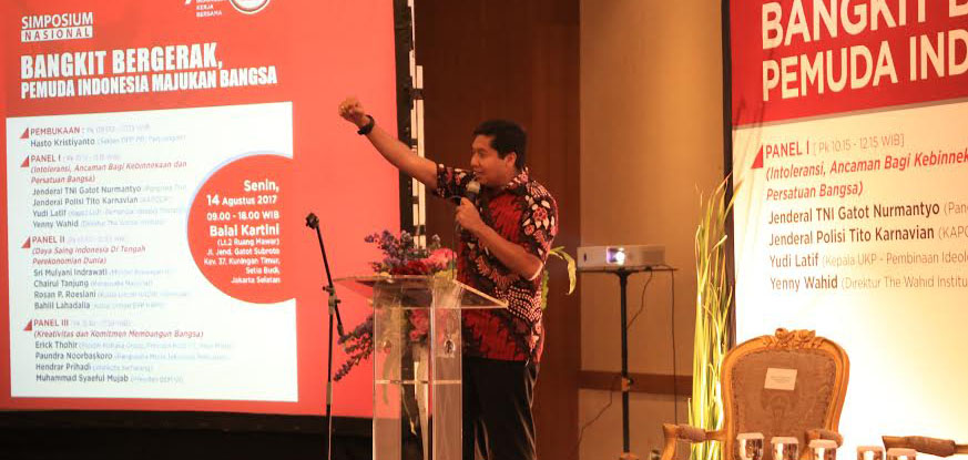 Hadir sebagai pembicara dalam simposium ini adalah Panglima TNI Gatot Nurmantyo, Kapolri Tito Karnavian, Kepala Unit Kerja Presiden Pemantapan Ideologi Pancasila (UKP-PIP) Yudi Latif, Direktur The Wahid Institute Yenny Wahid, Menteri Keuangan Sri Mulyani, pengusaha nasional Chairul Tanjung, Ketum KADIN Rosan P Roeslani, Ketum HIPMI Bahlil Lahadalia, Presiden Inter Milan Erick Tohir, pengusaha muda teknologi perikanan Paundra Noorbaskoro, Walikota semarang, Hendrar Prihadi dan Presiden BEM UI Muhammad Syaeful Mujab.