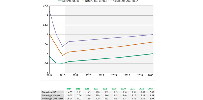 Grafik yang ditampilkan pada berita ini, imbuh Gede, menggambarkan forecast Bank Dunia atas harga gas alam hingga tahun 2030.