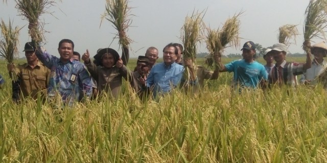 RR, demikian mantan Menteri Perekonomian ini disapa, berada di Penggalang pada Selasa (13/2) pagi untuk menghadiri panen raya. Undangan dikirim Sahabat Tani, kelompok tani di Penggalang.