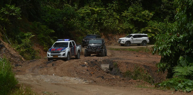 Sambil berseloroh salah satu staf Kementerian bilang, “sepertinya kita semua harus pakai helm nih dalam mobil,†katanya. Maklum, sepanjang jalan selain perut serasa dikocok, badan bergoyang, kepala juga terpentok-pentok. Menteri Jonan ada dalam kendaraan Jeep milik Bupati yang diberi plat RI 34. Lainnya menggunakan SUV.