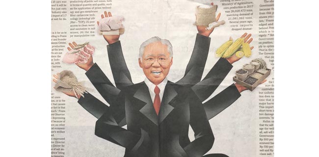 Rizal mengunggah sebuah surat kabar dalam berbahasa Inggris dengan tampilan foto Menteri Perdagangan Enggartiasto Lukita yang menggunakan jas hitam dengan tanga diapit dibelakangnya. Namun dalam ilustrasi tersebut, tangan Enggar yang jumlahnya berlipat itu menggenggam sejumlah komoditas pangan.