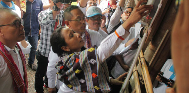 Rakyat Merdeka, yaitu Kiki Iswara Darmayana, Ratna Susilowati, Kartika Sari dan Fajar El Pradianto dengan Rini Soemarno, Selasa (6/3) di sela kunjungan ke Kupang, NTT.