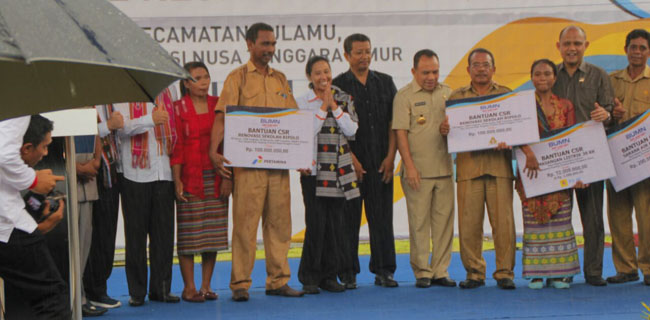Rakyat Merdeka, yaitu Kiki Iswara Darmayana, Ratna Susilowati, Kartika Sari dan Fajar El Pradianto dengan Rini Soemarno, Selasa (6/3) di sela kunjungan ke Kupang, NTT.