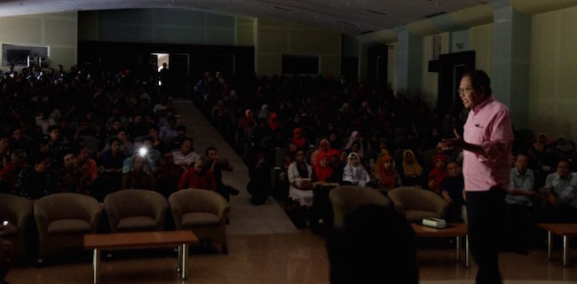 Ada kejadian unik saat ekonom senior DR. Rizal Ramli berbicara di Seminar Nasional dan Konsorsium Keilmuan Prodi Ekonomi Syariah UIN Sunan Kalijaga, Jogjakarta, Rabu (9/5).