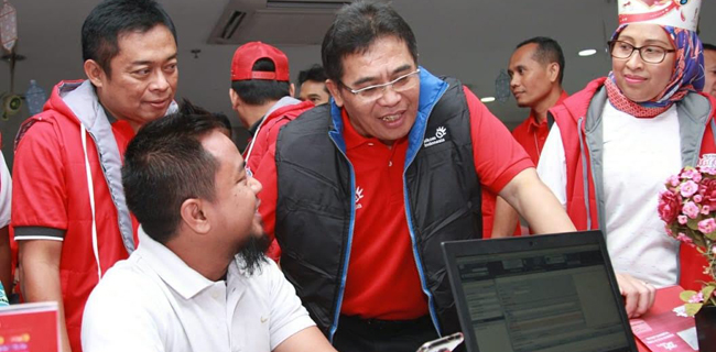 Direktur Utama Telkomsel, Ririek Adriansyah (kiri), dan Executive Vice President Telkomsel Area Jabotabek Jabar, Ririn Widaryani (kanan), mendampingi Direktur Utama Telkom Indonesia, Alex J Sinaga (tengah), saat menyapa pelanggan yang sedang melakukan kunjungan ke GraPARI Alia Jakarta Pusat di H-1 Idul Fitri 1439 H (Kamis, 14/6). Kegiatan menyapa langsung pelanggan sekaligus mengecek kesiapan layanan GraPARI jelang Hari Raya Idul Fitri 1439 H dilakukan untuk memastikan pelayanan prima terhadap pelanggan hingga pasca Lebaran yang jatuh besok (Jumat, 15/6). Mohamad Qori/Rakyat Merdeka