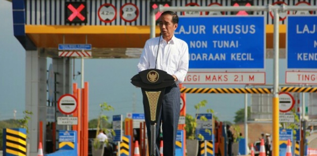 Jokowi juga menjelaskan saat ini pembangunan jalan tol, satu persatu telah diselesaikan. Menurutnya, jalan tol sangat krusial bagi pertumbuhan ekonomi karena dapat mempercepat arus distribusi barang dan jasa.