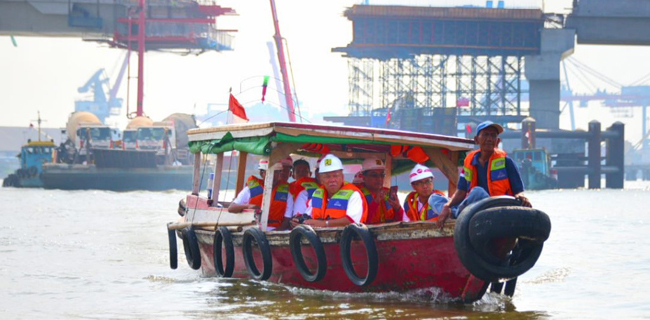 Peninjauan dilakukan menggunakan perahu menyusuri Sungai Musi yang ramai dengan lalu lintas kapal barang dan penumpang, sekaligus melintasi bagian bawah jembatan.