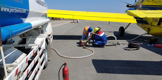 Selain mengoptimalkan alih suplai BBM dari Terminal BBM di sekitar Sulawesi, Pertamina juga mengerahkan pengriman BBM dengan menggunakan pesawat Air Tractor.