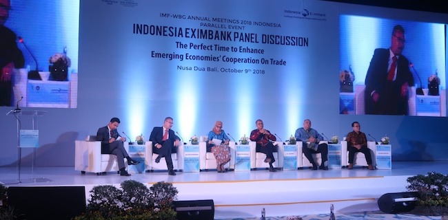 Begitu kata Direktur Eksekutif Indonesia Eximbank, Sinthya Roesly dalam diskusi panel bertajuk “The Perfect Time to Enhance Emerging Economies Cooperation on Trade†yang digelar dalam rangkaian Pertemuan Tahunan IMF-World Bank Group di Bali, Selasa (9/10).