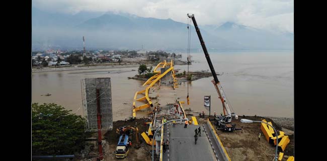 "Crane berkekuatan 60 ton dari Bayan Resources untuk Tim Siaga Bencana ESDM sudah memasuki hari keempat dalam mengangkat dan memindahkan jembatan kuning yang terdampak bencana 28 September lalu," ujar Kepala Biro Komunikasi, Layanan Informasi Publik dan Kerja Sama, Kementerian ESDM, Agung Pribadi di Jakarta, Selasa (23/10).