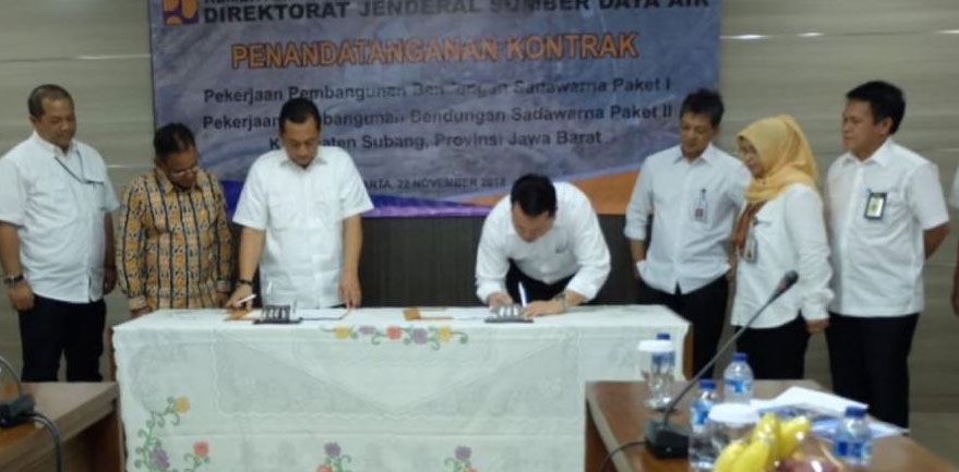 Bendungan Sadawarna menjadi bendungan baru keenam yang telah ditandatangani kontraknya pada tahun 2018. Sebelumnya telah ditandatangani kontrak pembangunan Bendungan Tiga Dihaji di Provinsi Sumatera Selatan, Bendungan Bener di Provinsi Jawa Tengah serta Bendungan Sidan di Provinsi Bali pada 16 Oktober 2018.