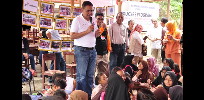 "Pertamina yang pertama kali datang dan membuka tenda untuk digunakan kegiatan belajar mengajar," katanya.
