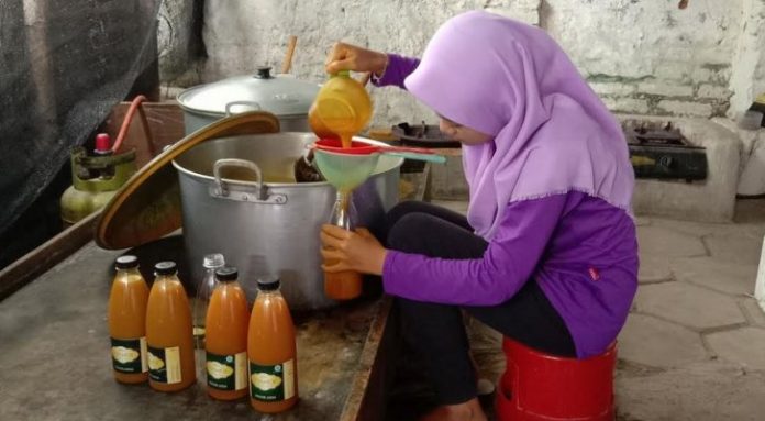 Pemilik rumah produksi D’Jamoe di kelurahan Mojorejo kecamatan Taman kota Madiun mengaku sejak merebaknya corona penjualannya bisa mencapai 100 botol perhari yang tadinya perhari hanya 50 botol.