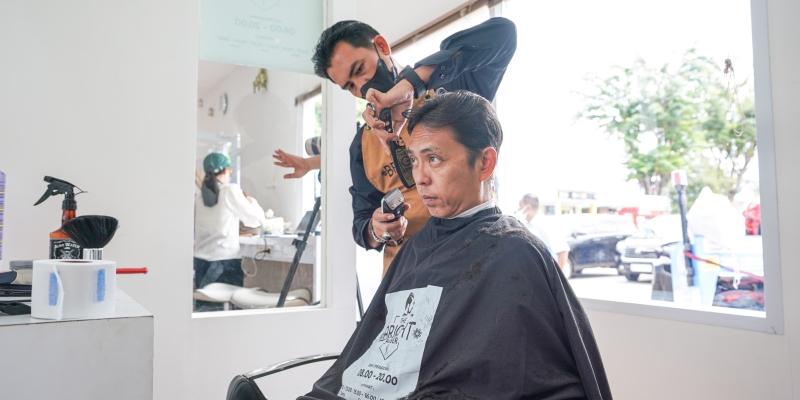 Ia sengaja memilih beristirahat di Serambi MyPertamina dan menikmati fasilitas barbershop yang tersedia.