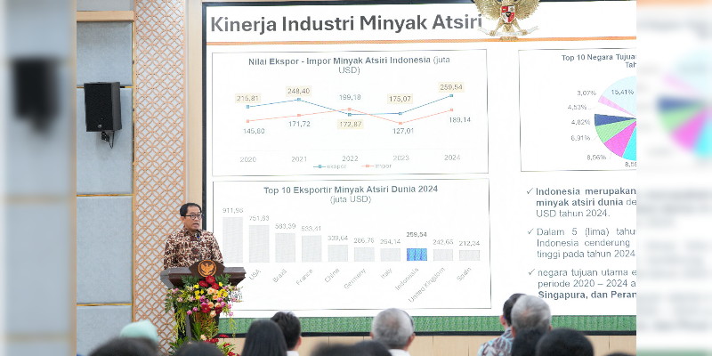 "Saat ini, Indonesia menempati posisi sebagai eksportir minyak atsiri terbesar kedelapan di dunia, dengan nilai ekspor mencapai 259,54 juta Dolar AS pada tahun 2024," terang Faisol dalam acara Pre Event Aromatika Indofest 2025, di Gedung Kementerian Perindustrian, Jakarta, baru-baru ini, dikutip Sabtu 24 Mei 2025.