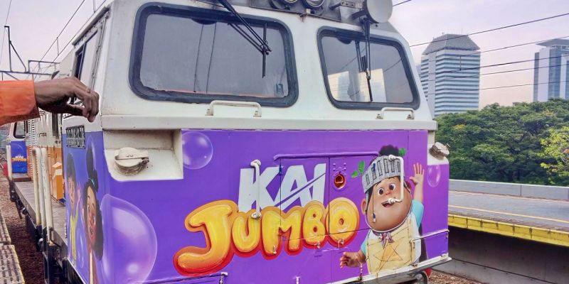 Karakter Jumbo yang ceria dan ramah anak ditampilkan menonjol di berbagai sudut kereta, mulai dari bagian luar, bordes, hingga interior kereta untuk mewarnai perjalanan libur sekolah.