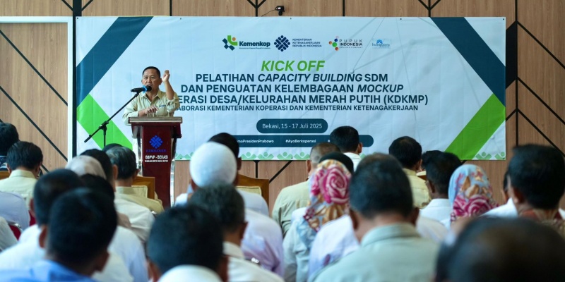 Demikian disampaikan Sekretaris Kementerian Koperasi (SesKemenkop) Ahmad Zabadi pada acara Kick Off Pelatihan Capacity Building SDM dan Penguatan Kelembagaan Koperasi Percontohan (Mockup) Koperasi Desa Merah Putih, di Bekasi, Jawa Barat, Selasa, 15 Juli 2025.