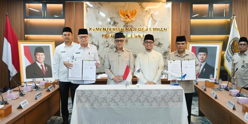 Penandatanganan berlangsung di Gedung Kemenhaj, Jakarta, Rabu 17 Desember 2025, oleh Menteri Haji dan Umrah RI Mochammad Irfan Yusuf dan Direktur Utama PT Garuda Indonesia Glenny Kairupan.