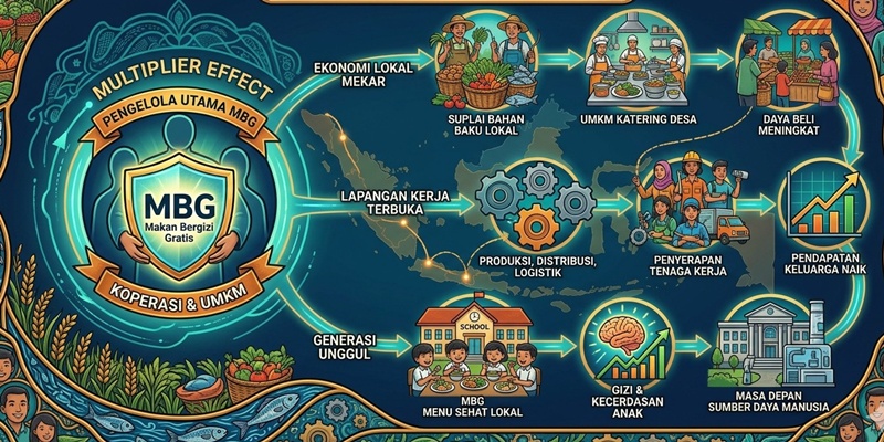 Rantai pasok bahan pangan, jasa katering, hingga distribusi logistik dapat menggerakkan ekonomi lokal dan memberikan manfaat langsung bagi masyarakat sekitar sekolah.
