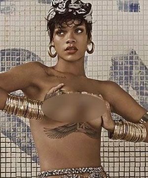 Sebelumnya, pelantun Umbrella ini dikecam gara-gara mengunggah foto topless dari hasil pemotretannya di majalah Prancis, Lui. Di dalam foto, Rihanna memamerkan payudaranya yang telah ditindik.