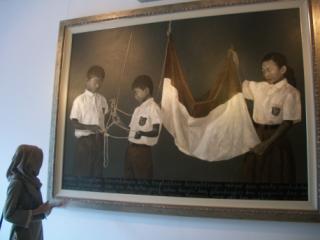 Tiga orang siswi tersebut berada di dalam sebuah frame gambar, yang dilukis I Gusti Mangu putra, di tahun 2011. Inilah salah satu lukisan yang dipajang dalam pameran bersama yang menampilkan karya seni lukis dan koleksi miniatur otomotif ini, digelar sepanjang 10 Desember 2014 - 10 Januari 2015 di Jakarta. Lewat pameran bersama ini, diharapkan nasionalisme di Tanah Air tak luntur.