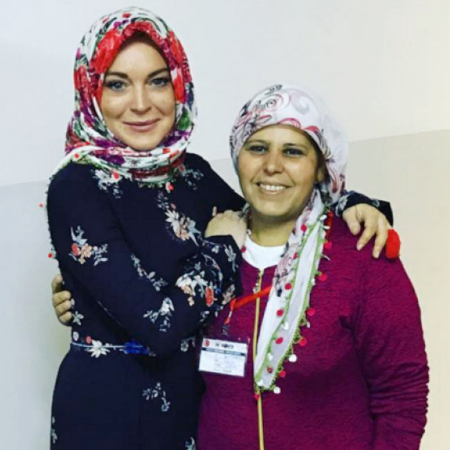 Sebuah foto diunggah Lohan di Instagram, Minggu (9/10), menampilkan dirinya dan seÂorang sukarelawan dengan cantik mengenakan hijab. Rupanya, hijab tersebut merupakan hadiah dari sukarÂelawan itu. Selain itu, Lohan juga berÂterima kasih kepada walikota Gaziantep, Fatma Sahin, yang menemaninya selama di sana.