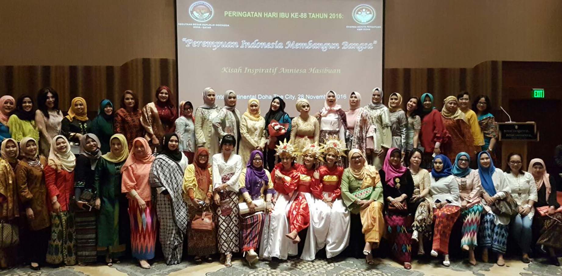 Disainer terkemuka Indonesia Anniesa Hasibuan (30) mengelar acara fashion show di Qatar guna memeriahkan Peringatan Hari Ibu ke-88 yang diselenggarakan oleh Dharma Wanita Persatuan (DWP) KBRI Doha dan Persatuan Wanita Indonesia di Qatar (PWIQ) pada tanggal 28 November 2016. Kunjungan Anniesa Hasibuan dan Dian Pelangi (25) ke Qatar dalam rangka undangan untuk tampil pada Mercedes-Benz Fashion Week Doha (MBFWD) yang berlangsung pada 28 November-1 Desember 2016 di Hotel Hilton Doha. Undangan tersebut merupakan undangan kehormatan bagi disainer Indonesia selain 24 disainer lainnya dari manca negara untuk berkiprah dalam dunia busana di Timur Tengah. KBRI Qatar