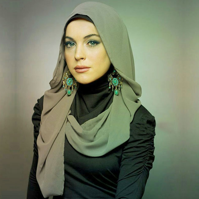 Setelah sebelumnya meÂmakai hijab di Bandara HeathÂrow, eks artis cilik ini terlihat tampil berhijab di