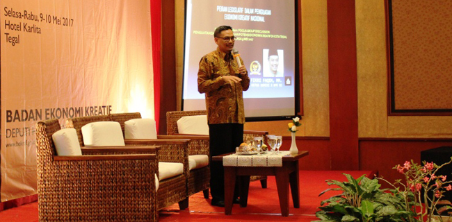 . Wakil Ketua Komisi X DPR RI Fikri Faqih mendorong masyarakat Kota Tegal, Jawa Tengah, agar menguatkan dan mengembangkan ekonomi kreatif. Sebab, saat ini adalah era dimana pertumbuhan ekonomi tidak lagi berbasis pada sumber daya alam (SDA) melainkan kreativitas.