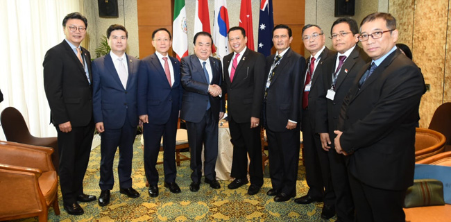"Perlu kerja sama yang lebih kuat antara Indonesia dan Korea Selatan guna menghadapi gejolak perekenomian global. Dengan sifat komplementaritas sumber daya dan keunggulan yang dimiliki masing-masing pihak, kami melihat mekanisme kerja sama ekonomi yang memberikan win-win solution perlu terus dikembangkan," ujar Bamsoet saat pertemuan bilateral dengan Ketua Parlemen Korea Selatan, Moon Hee Sang, sebelum dimulai pertemuan Ketua Parlemen MIKTA (Meksiko, Indonesia, Korea, Turki dan Australia) di Bali, akhir pekan lalu.