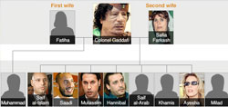 Istri kedua Khadafi adalah SaÂfia Farkash. Dia bertemu deÂngan sang kolonel semasa bekerja menjadi perawat di Rumah Sakit Al-Bayda. Mereka menikah pada 1971. Anak yang paling tua meÂreka adalah Saif al Islam al KhaÂddafi (39). Penyandang gelar PhD dari London School of EcoÂnomic Inggris ini meruÂpakan Ketua Yayasan Amal dan PemÂbangunan Khadafi (GICDF), badan amal yang berjasa memÂbebaskan tawanan kelompok Islam militan di Filipina SeÂlatan. Meski menegaskan tidak tertarik meÂlanjutkan kepeÂmimÂpinan ayahÂnya, Saif selalu munÂcul ke publik.