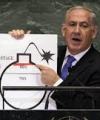 Tidak hanya itu, Netanyahu bahkan menjelaskan pernyataannya itu dalam gambar sebuah bom. Dalam gambar bom itu terdapat garis merah, yang menurut Netanyahu merupakan batas akhir yang harus segera ditetapkan oleh dunia internasional sebelum Iran merampungkan tahap kedua pengayaan uranium. Netanyahu melanjutkan bahwa tahap kedua pengayaan uranium akan dilakukan Iran untuk memproduksi senjata nuklir.