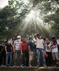 Sky News (Minggu, 23/6), seorang saksi mata mengatakan, polisi dengan menggunakan gas air mata berusaha membubarkan ribuan demonstran yang berkumpul di Taksim Square. Mereka berunjuk rasa mengutuk penggusuran lahan sebuah taman kota, Gezi Park, yang akan dijadikan Mall.