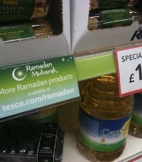Tesco, kelompok supermarket internasional, berkantor pusat di Inggris yang memiliki lebih dari 6.000 toko tersebar di seluruh penjuru Inggris, merancang lorong-lorong khusus dalam nuansa hijau yang menjual makanan khas berbuka puasa.