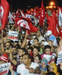 Para aktivis pro-pemerintah mengikuti demonstrasi hari Sabtu (3/8) di Lapangan Kasbah Tunisuntuk menunjukkan dukungan publik atas “keabsahan†Partai Ennahda untuk memerintah. Pekan lalu, partai ini menghadapi demonstrasi massa dari kelompok oposisi sekuler yang menuntut pengunduran diri pemerintah karena gagal mencegah pembunuhan dua politisi oposisi.
