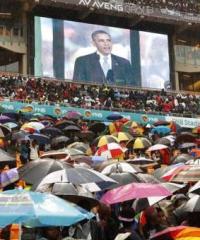 Nelson Mandela wafat di usia ke 95 tahun pada Kamis (5/12) minggu lalu. Upacara peringatan nasional tersebut merupakan rangkaian acara penghormatan bagi Mandela sebelum dimakamkan pada Minggu (15/12).