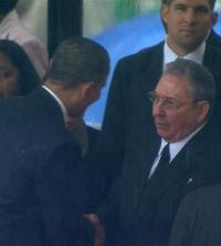 Di antara puluhan pemimpin dunia itu, hadir dua petingggi negara yang berseteru sejak masa perang dingin, Kuba dan Amerika Serikat. Tetap perseteruan ideologis itu dikebelakangkan sesaat demi menghormati Mandela. Ketika hendak maju ke podim untuk memberikan pidato, Presiden Amerika Serikat, Barack Obama, sempat berjabat tangan dengan Presiden Kuba, Raul Castro.