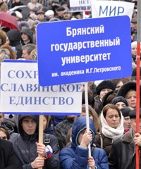 "Saya simpati dengan warga Ukraina, khususnya dengan penduduk Krimea dan Sevastopol," kata penduduk Bryansky yang ikut dalam unjuk rasa, Vitaly Volvich.